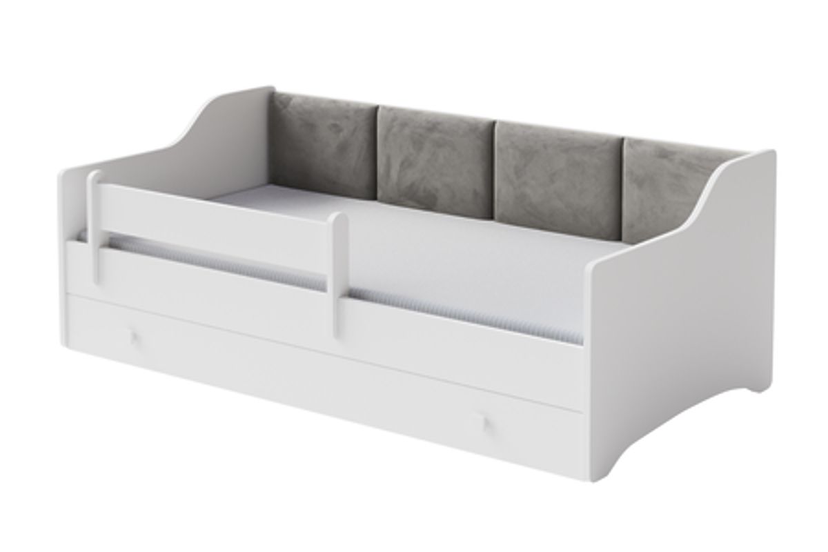 Banaby.pl » Łóżka dla dzieci / Z barierką / Łóżko dziecięce ERYK z szufladą i barierką 160x80 szary panel