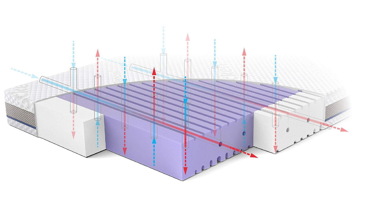 Pokrowiec i pionowe oraz poziome kanały są w pełni zintegrowane - dzięki temu powstaje rozległa sieć i materac oddycha.
