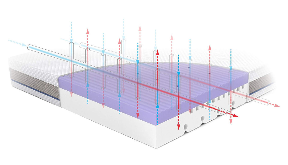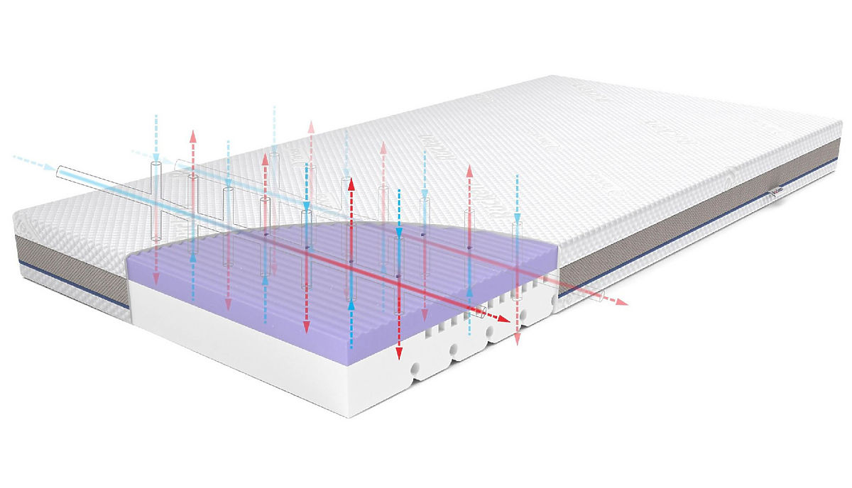 Pokrowiec siatki i pionowe oraz poziome kanały są w pełni zintegrowane - dzięki temu powstaje rozszerzona sieć i materac oddycha.