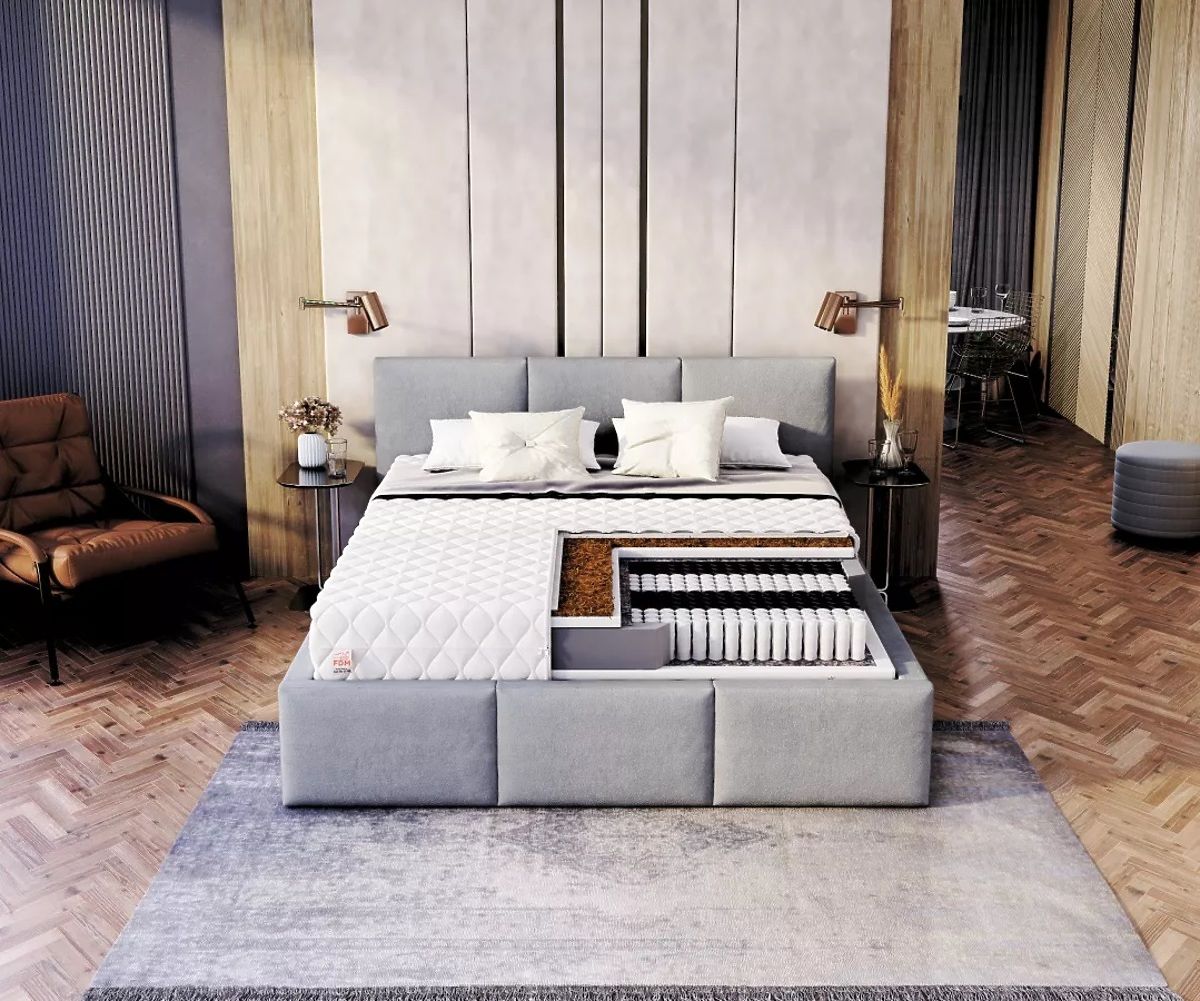 Rdzeń materaca tworzą kieszeniowe sprężyny, z których każda umieszczona jest w specjalnej kieszeni. Sprężyny nie są ze sobą połączone i pracują niezależnie pod obciążeniem. Dopasowują się do kształtu ciała śpiącej osoby, zapewniając doskonałe podparcie kręgosłupa. Materac podzielony jest na 7 stref podparcia, z których każda zapewnia odpowiednie podparcie dla danej części ciała. FAMILY to model dwustronny dzięki różnym stopniom twardości z każdej strony materaca, więc łatwo dostosuje się do twoich osobistych preferencji. Jedna strona materaca składa się z pianki PUR i wkładki kokosowej, a druga strona zawiera warstwę pianki PUR. Elastyczna pianka jest odporna na odkształcenia i zapobiega rozwojowi roztoczy i innych mikroorganizmów. Naturalny kokos jest przewiewny i ma właściwości antyalergiczne. Między sprężyny a piankę włożono materiał oddzielający. Jest to naturalny filc, który może znacznie wydłużyć żywotność materaca i wzmocnić jego konstrukcję. Użyte materiały są bezpieczne, trwałe i odporne na zużycie. W rezultacie materac FAMILY będzie służył przez wiele lat.