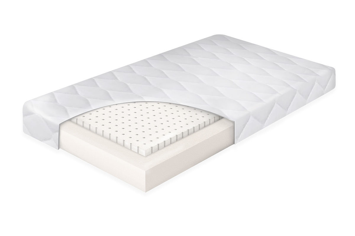 Dziecięcy materac LATEX o wymiarach 70x160 cm należy do materacy, które dają możliwość wyboru stron materaca w zależności od tego, która jest dla dziecka bardziej komfortowa. Jedna strona jest z pianki PUR, a druga to 3 cm warstwa wysokoelastycznej pianki lateksowej. Komfortowy materac dla dzieci w każdym wieku.