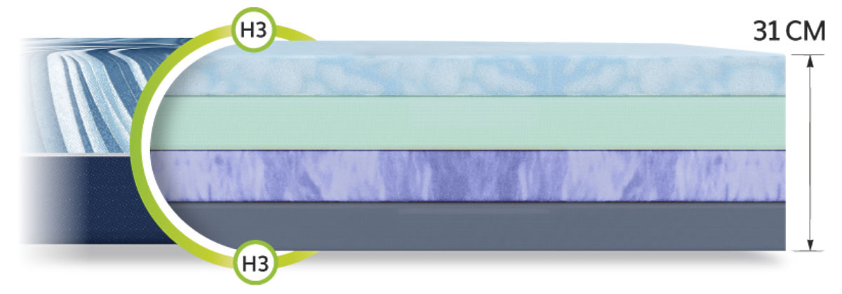 Kombinacja wysokiej jakości pianki HR Black i RevinePurple zapewnia materacowi doskonałą podstawę, znacząco wpływa na jego twardość i wspiera górne warstwy materaca. Pianka GreenRes dba o doskonałe rozłożenie wagi leżącej osoby i nadaje materacowi sprężystość. Górna warstwa materaca z pianki Eucafeel pod wpływem nacisku i temperatury doskonale dopasowuje się do kształtu Twojego ciała, jest przyjemnie miękka i zapewnia wyjątkowy komfort podczas snu. Dodatkowo ma wyjątkowe właściwości w postaci odprowadzania ciepła i utrzymania przyjemnej temperatury podczas snu. Materac DREAMER LUX zachwyci Cię swoim komfortem i przyniesie całkowitą przyjemność podczas każdego odpoczynku.
