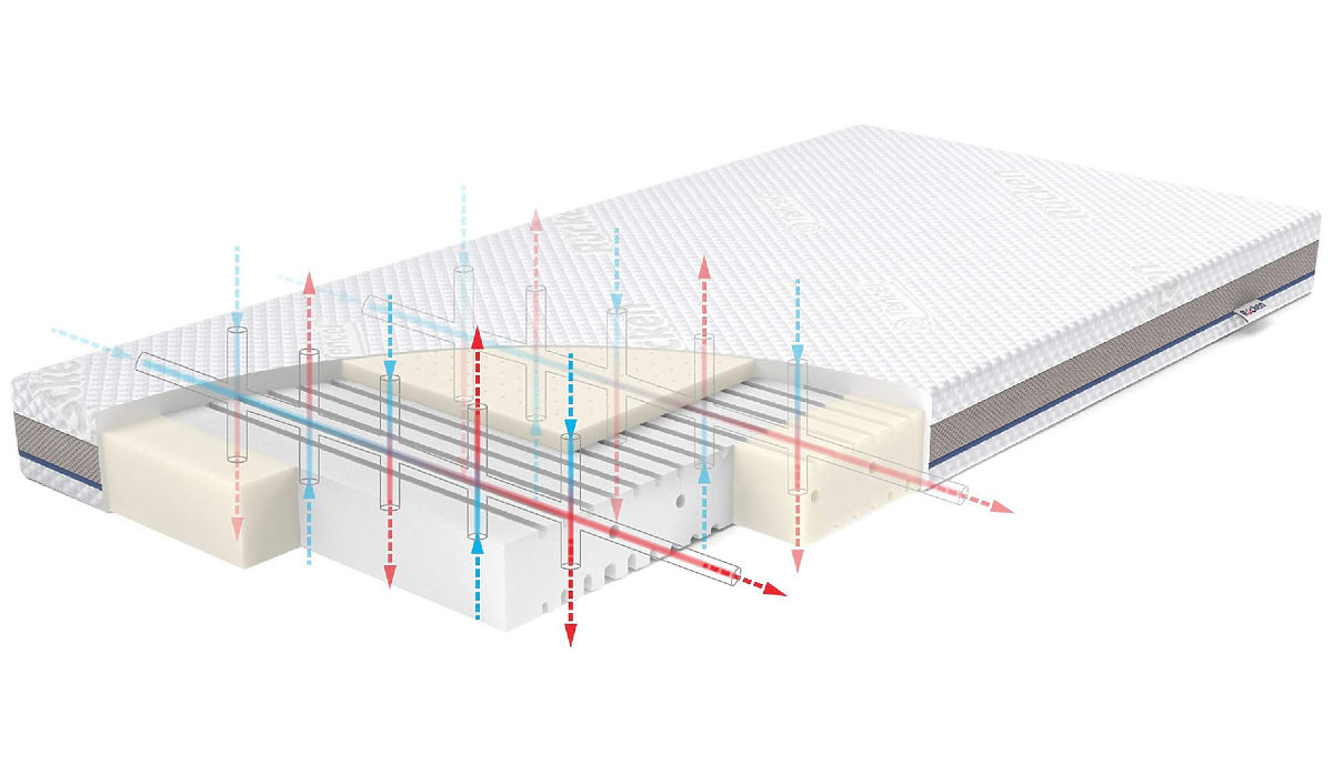 Pokrowiec siatki i pionowe oraz poziome kanały są w pełni zintegrowane - dzięki temu powstaje rozszerzona sieć i materac oddycha.