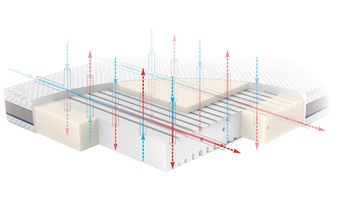 Po całym obwodzie materaca wszyliśmy siatkę wentylacyjną, która współpracuje z kanałami wentylacyjnymi materaca.