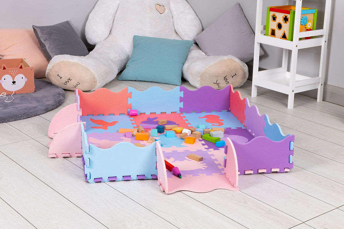 Mata posiada specjalną antypoślizgową fakturę i jest całkowicie bezpieczna dla dzieci, amortyzując upadki podczas zabawy i nauki pierwszych kroków.