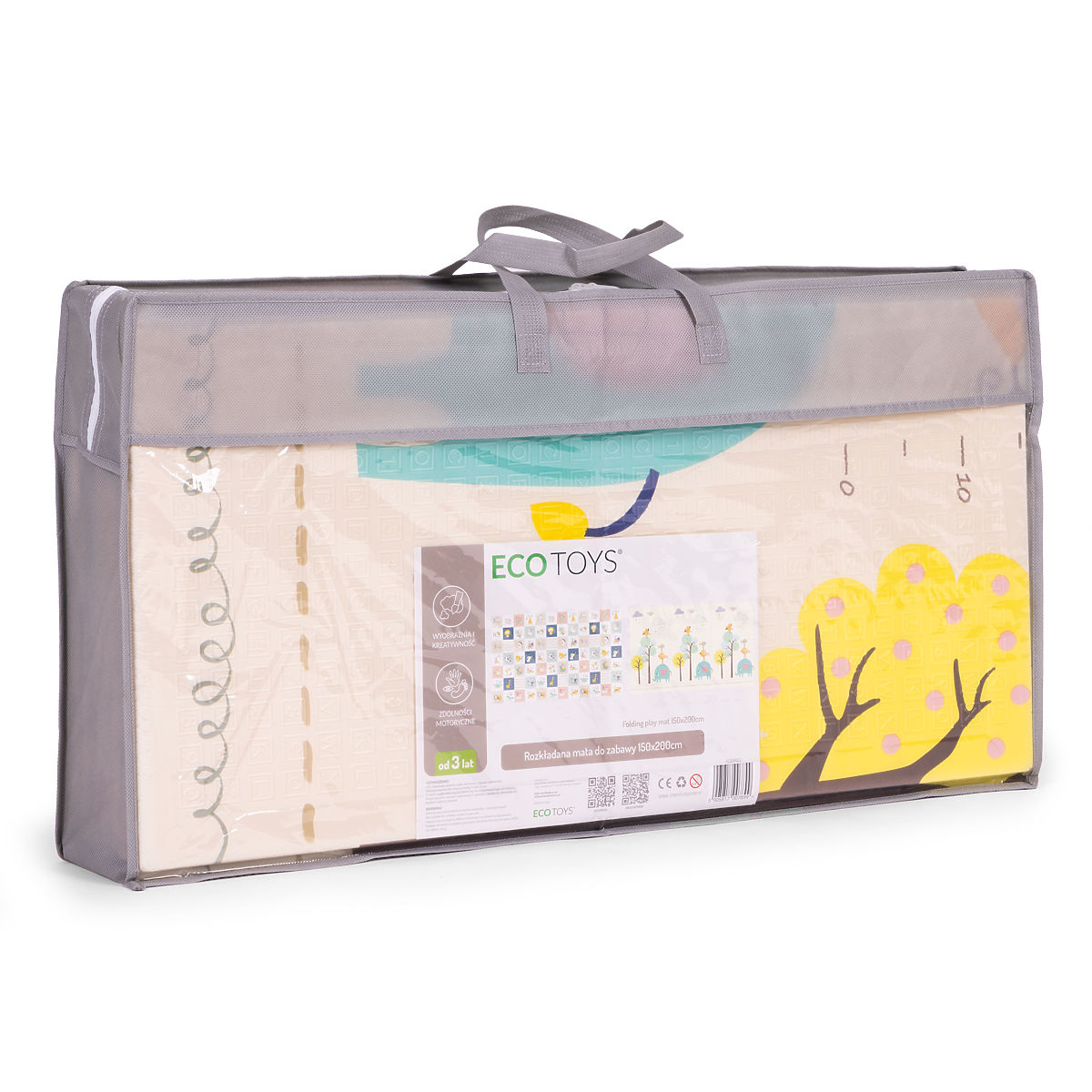 PRAKTYCZNA NA KAŻDY DZIEŃ I NA WYJAZDYSkładana konstrukcja maty to idealne rozwiązanie dla rodziców, którzy cenią sobie wygodę i mobilność każdego dnia. Dzięki przemyślanej formie można ją złożyć w kilka chwil, a następnie umieścić w praktycznej torbie transportowej. Łatwo ją przenieść do innego pomieszczenia, zabrać na wycieczkę lub rozłożyć w ogrodzie. Ta funkcjonalność pozwala dziecku bawić się w swoim ulubionym miejscu bez względu na okoliczności, a po zakończeniu zabawy – szybko i wygodnie uporządkować przestrzeń.