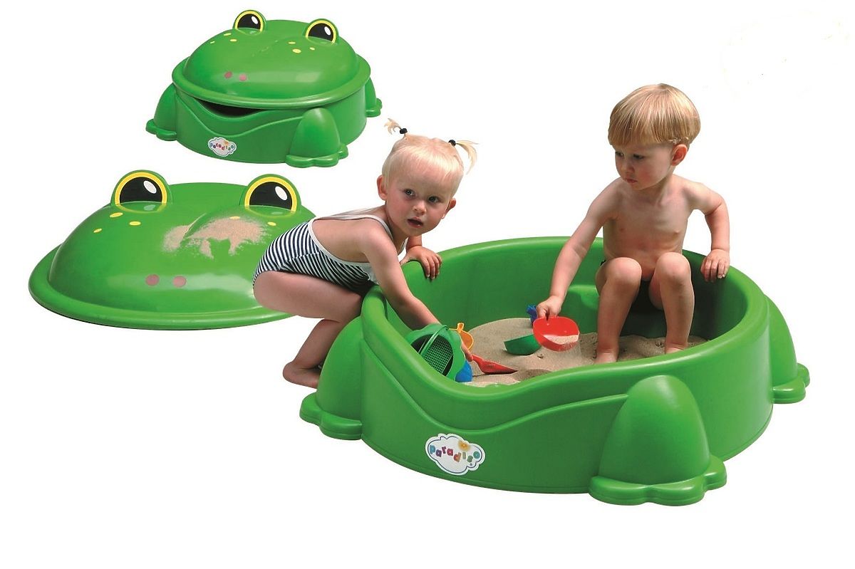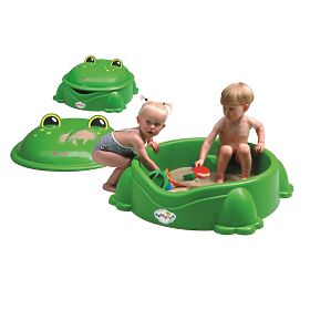 Piękne plastikowa piaskownica z pokrywą w popularnych żab motywów, każde dziecko rozrywkę na wiele godzin. Piaskownica ma solidne podstawy i jest bardzo przestronne.