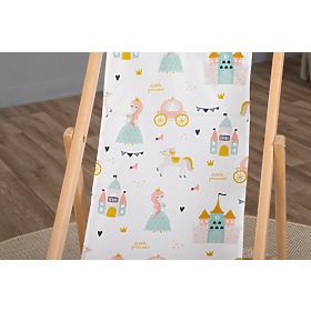 Piękny leżak plażowy z bajkowym wzorem bajkowych księżniczek i zamków. Oprócz księżniczek i zamków, na tkaninie znajdziesz także królewskie powozy, konie i mały napis mała księżniczka . Leżak plażowy dla dzieci to świetna alternatywa dla krzesła ogrodowego lub fotela.