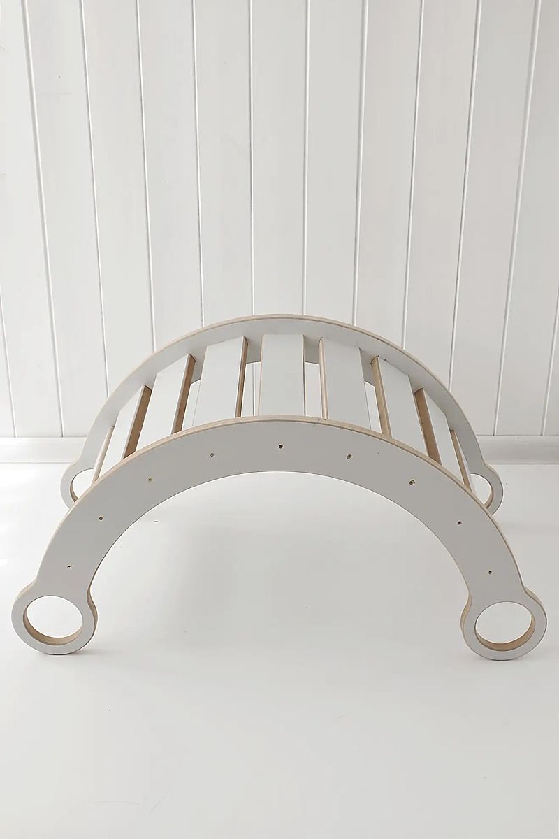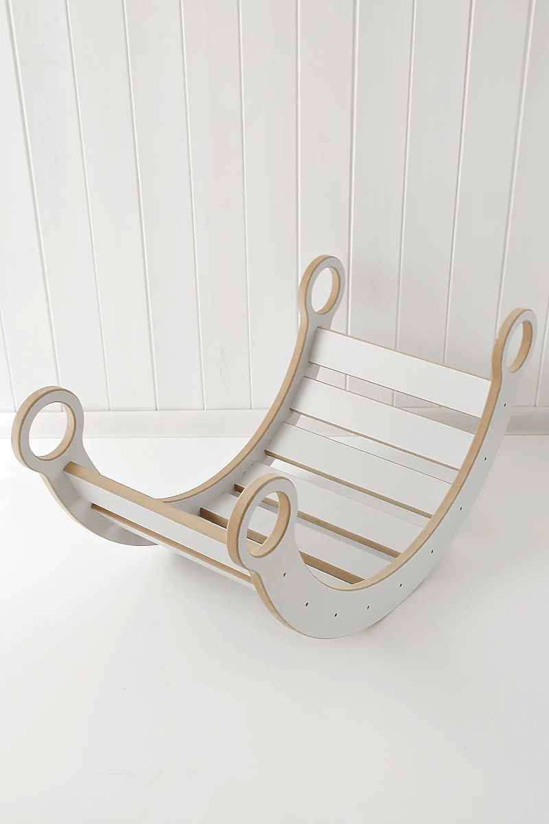 Stylowa drewniana huśtawka Montessori S w białym kolorze doskonale pasuje do każdego pokoju zabaw lub dziecięcego pokoju. Ten wielofunkcyjny element zapewnia nie tylko zabawne huśtanie, ale także możliwość kreatywnego wykorzystania podczas zabawy – jako baza do budowania, tajna kryjówka lub małe stoiska handlowe. Naturalnie wspiera rozwój umiejętności motorycznych, równowagi i siły dzieci. Huśtawka Montessori S jest bezpieczna i trwała dzięki solidnej konstrukcji i użyciu wysokiej jakości materiałów. Jej prosty i ponadczasowy design łatwo wpasuje się w każde wnętrze, zapewniając dzieciom godziny zabawy, a jednocześnie przyczyniając się do ich rozwoju fizycznego i mentalnego.