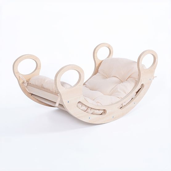 Dodaj swojemu wewnętrznemu meblowi odrobinę stylu i komfortu beżową poduszką specjalnie zaprojektowaną do huśtawek montessori.