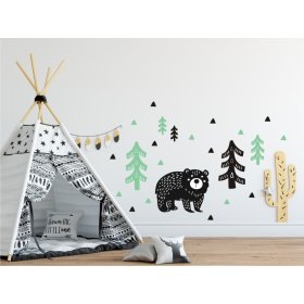 Banaby.pl » Dekoracje / Ścienne i okienne / Naklejki na ścianę / Dekoracja na ścianę - Niedźwiedź w lesie miętowo-czarny