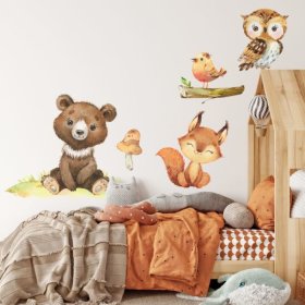 Te naklejki ścienne XL w postaci uroczego misia i jego leśnych przyjaciół pięknie ożywią nagie ściany każdego dziecięcego pokoju i ucieszą wszystkie dzieci.