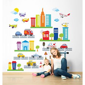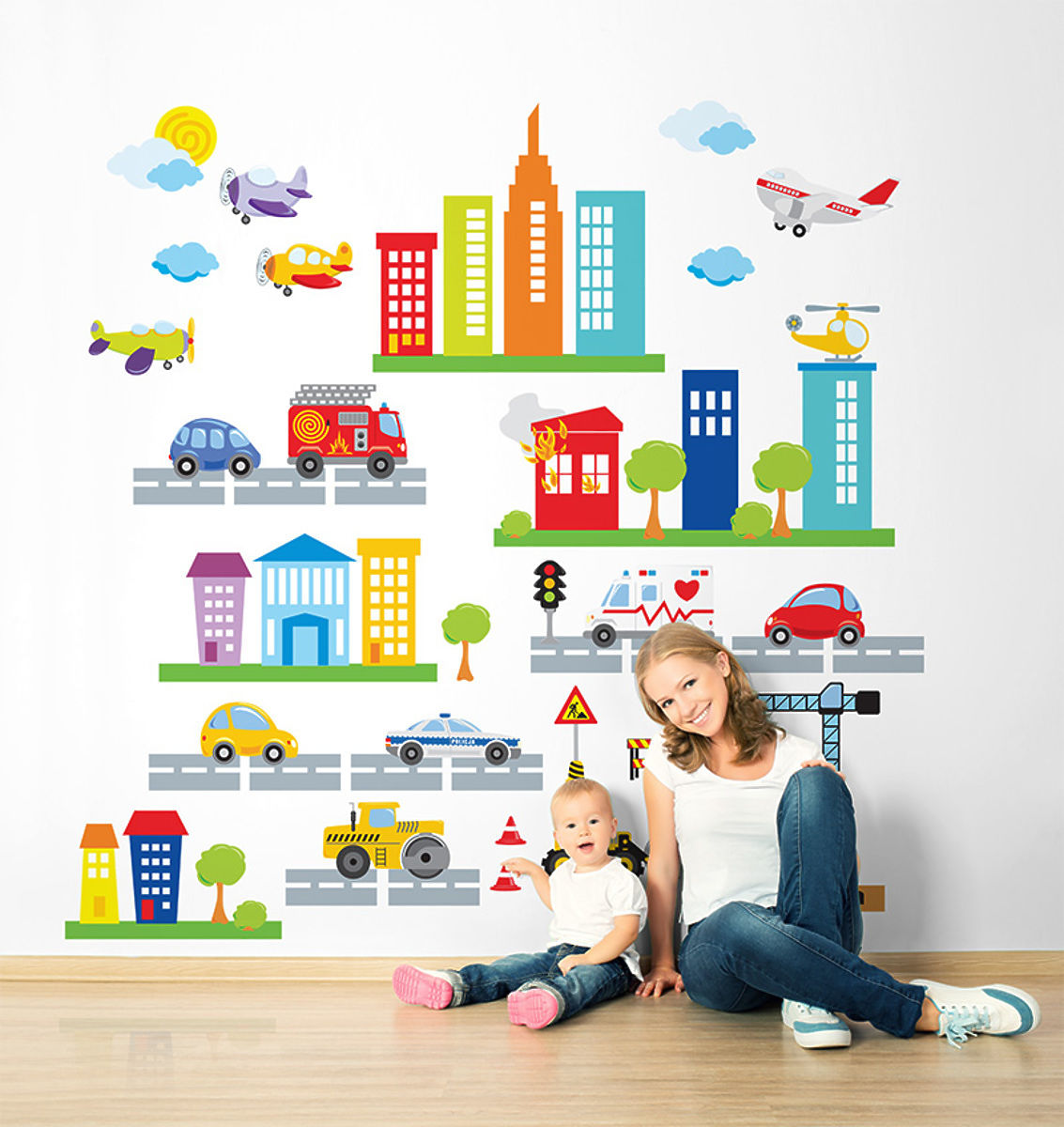 Zastanawiasz się nad wyborem odpowiednich dekoracji do pokoju dziecięcego? Chcesz ożywić i dopełnić wnętrze? Wybierz naklejki samoprzylepne z motywem miasta! Auta, budynki i samoloty udekorują pięknie wnętrze i sprawią, że stanie się ono naprawdę wyjątkowe! Naklejki mają wesołe, żywe i nasycone kolory! Wykonane zostały z folii samoprzylepnej o półmatowej powierzchni, która jest odporna na promieniowanie słoneczne i zmniejsza powstawanie refleksów świetlnych. Aplikacja dekoracji jest bardzo prosta. Wszelkie zabrudzenia wystarczy natomiast przetrzeć wilgotną ściereczką.