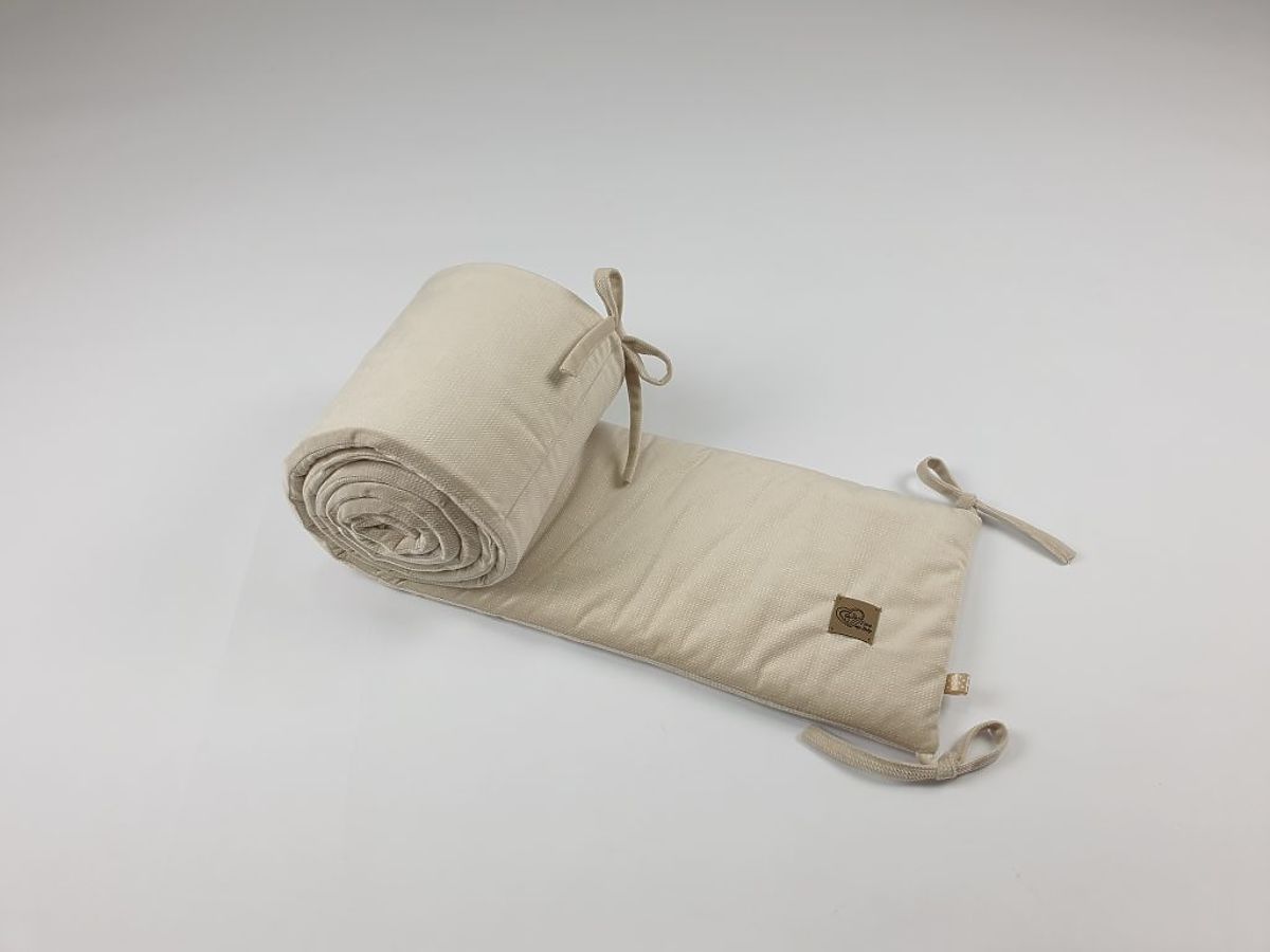 Ochraniacz do łóżeczka z delikatnego aksamitu w beżowym kolorze. .. więcej