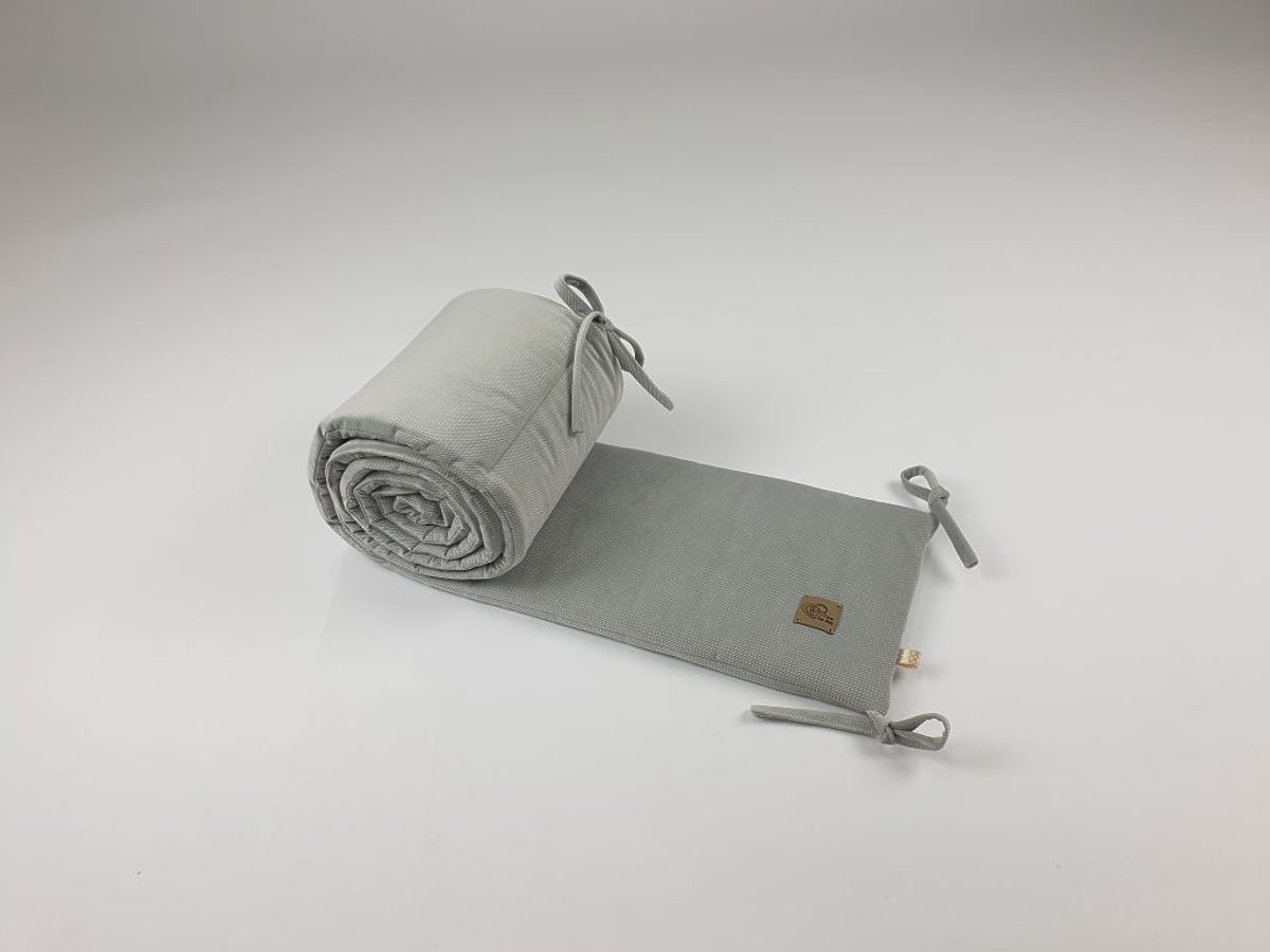 Stylowy i ponadczasowy jasnoszary kolor pasuje do każdego pokoju dziecięcego. Te ochraniacze z delikatnego aksamitu chronią Twoje dziecko przed twardymi szczebelkami, jednocześnie nadając łóżeczku elegancki wygląd. Dzięki praktycznym wiązaniom na troczki ochraniacz łatwo zamocujesz i pozostanie na swoim miejscu.