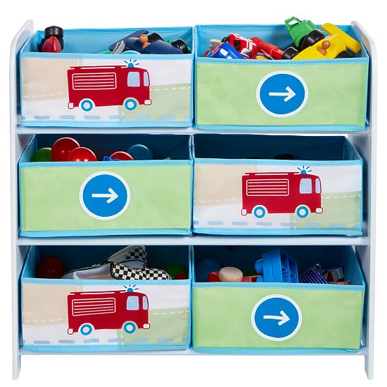 Piękna komoda / organizer w kolorze niebieskim ze środkami transportu i znakami.