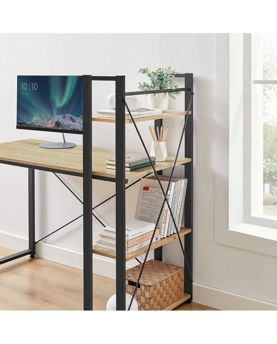 Biurko jest stabilne, więc można na nim spokojnie umieścić wszystko, co potrzebne do pracy lub nauki - komputer, monitor, głośniki, a także laptop, drukarkę, lampkę biurkową, książki i zeszyty. Na półkach jest miejsce na przykład na rośliny w doniczkach, książki lub inne drobiazgi.