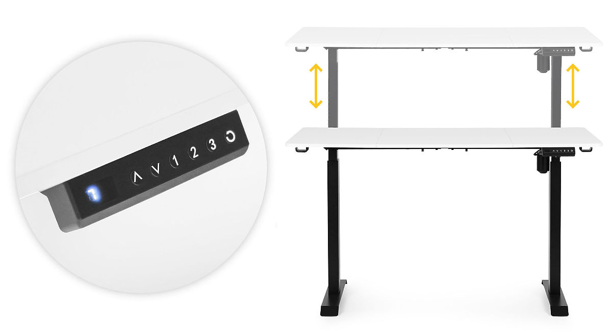PEŁNA KONTROLA NA WYCIĄGNIĘCIE RĘKIIntuicyjny panel sterowania z przyciskami góra/dół umożliwia precyzyjne ustawienie wysokości blatu, a trzy przyciski numeryczne pozwalają na zapis ulubionych pozycji. Dodatkowo można ustawić przypomnienie o zmianie pozycji co 30, 45 lub 60 minut, co wspiera utrzymanie zdrowych nawyków pracy.