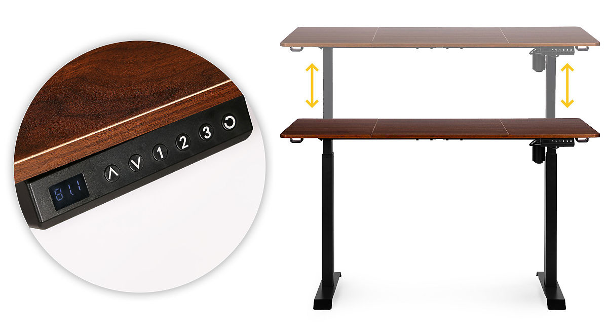 PEŁNA KONTROLA NA WYCIĄGNIĘCIE RĘKIIntuicyjny panel sterowania z przyciskami góra/dół pozwala na dokładne ustawienie wysokości blatu, a trzy przyciski numeryczne umożliwiają zapisanie ulubionych pozycji. Dodatkowo można ustawić przypomnienie zmiany pozycji co 30, 45 lub 60 minut, co wspiera utrzymanie zdrowych nawyków pracy.