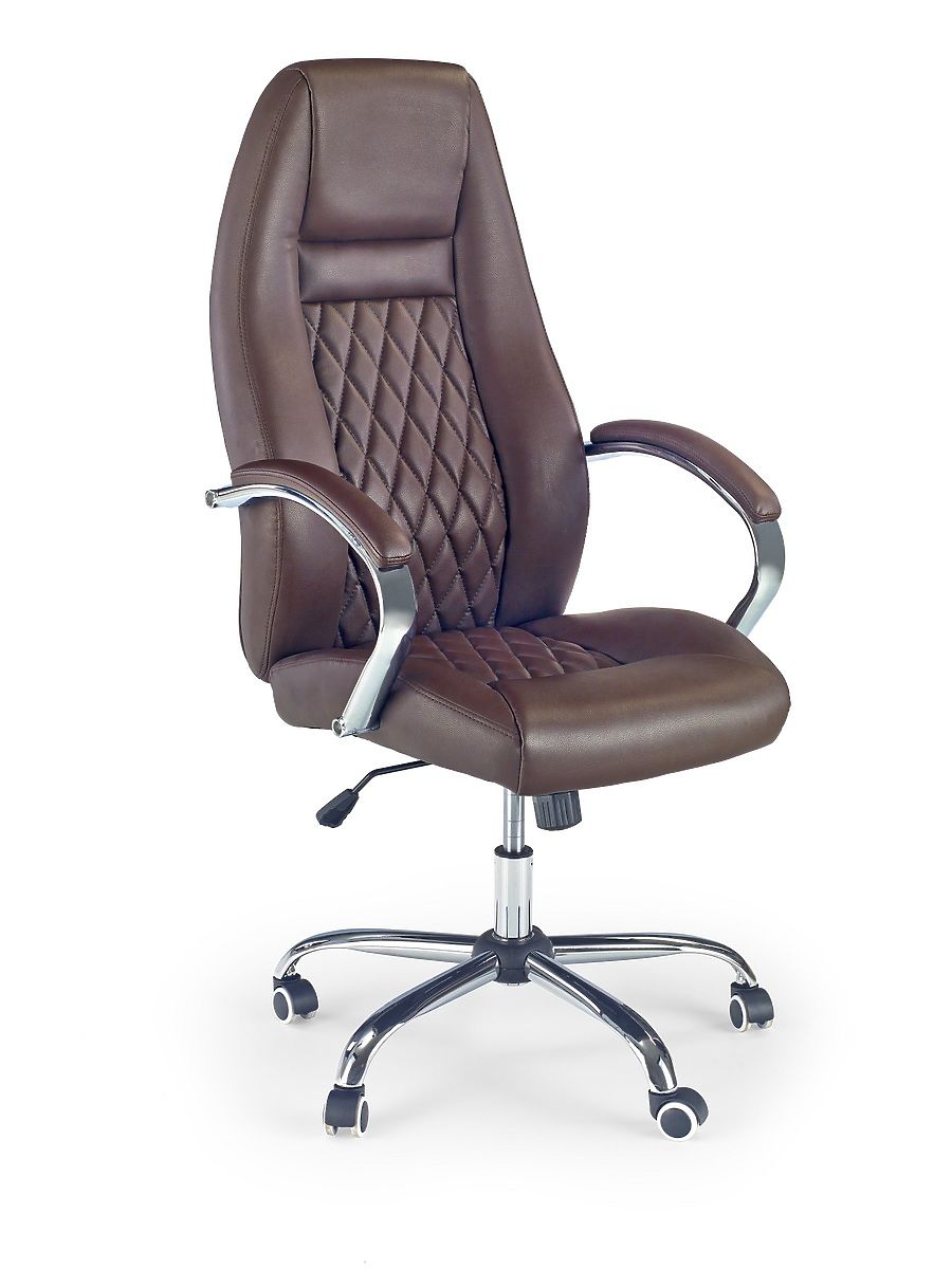 Krzesło biurowe Odyseus zapewnia odpowiednią wygodę podczas pracy przy komputerze. Posiada tapicerowane podłokietniki oraz wysokiej jakości obicie ze skóry ekologicznej w kolorze brązowym.