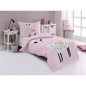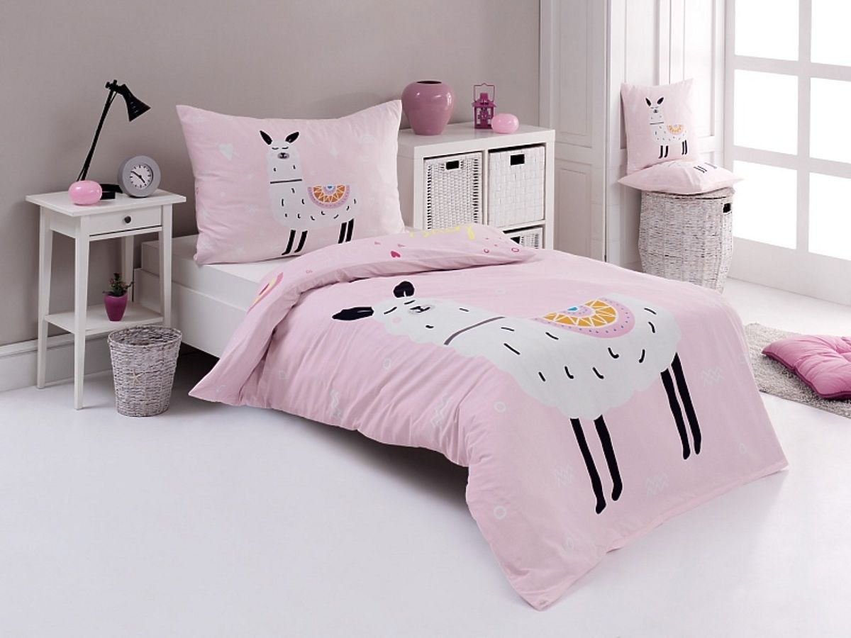 Urocza pościel z lamą będzie idealnym dodatkiem do pokoju każdej małej dziewczynki. Różowa pościel z uroczą lamą sprawi, że pokój małej księżniczki stanie się przytulniejszy, stworzy niepowtarzalny, nowoczesny klimat, a jednocześnie zachowa dziecięcy wygląd. Spód prześcieradła pokryty jest kolorowymi obrazkami i napisami, co daje możliwość zmienności.