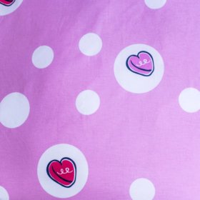 Piękna pościel z popularną bajkową myszką Minnie, która zakochana trzyma serce w ramionach. Druga strona pościeli jest z uroczym nadrukiem w groszki i serca.