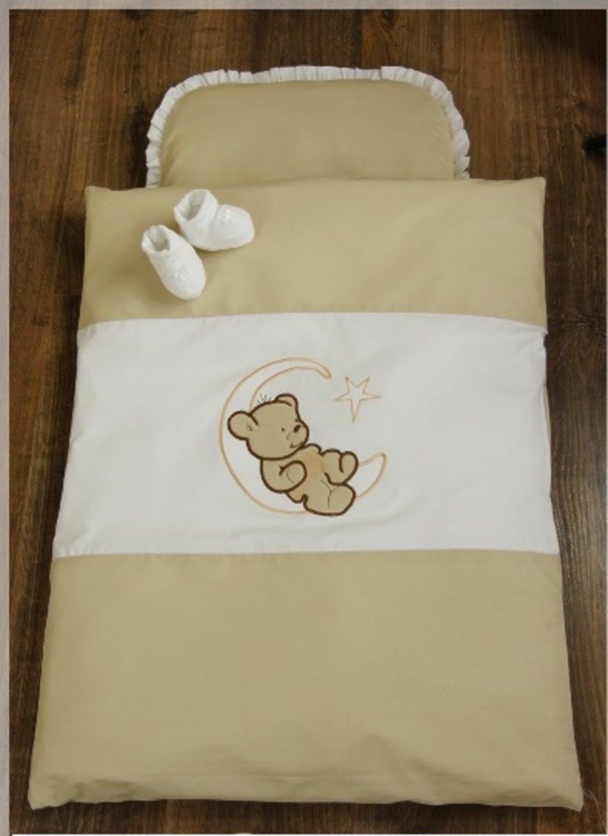 Piękny, 4-częściowy komplet pościeli z wypełnieniem ożywi każdy wózek dziecięcy. Ładny motyw misia pasuje dla wszystkich malutkich dzieci. Pościel ma żywe i nasycone kolory, które nie blakną nawet po wielu praniach.