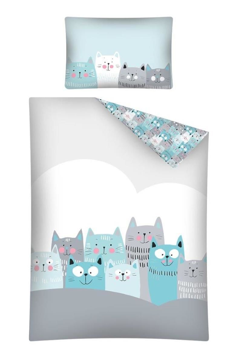 Wspaniała pościel z uroczymi kolorowymi kotami miejskimi na biało-szarym tle, 100x135 cm tworzy piękne i komfortowe środowisko dla Twojego dziecka.
