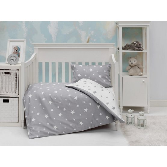 Połączenie szarego i białego koloru pościeli Gwiazdki ozdobi pokój każdego dziecka!