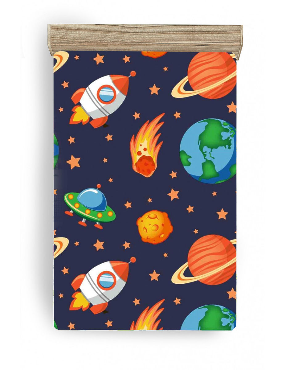 Piękne prześcieradło dziecięce z motywem kosmicznym, odpowiednie dla każdego dziecka. Wykonane są z wysokiej jakości, mocnej tkaniny, dzięki czemu są trwałe, miękkie, a przede wszystkim bardzo przyjemne w dotyku. Prześcieradło to nadaje się do materacy o grubości do 15 cm . Arkusz ma gramaturę 120 g/m² .