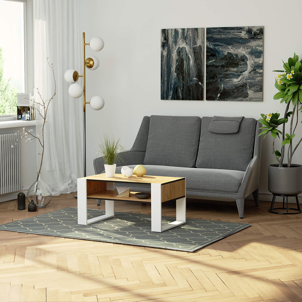Stolik konferencyjny Domi dąb craft z białymi nogami łączy atrakcyjny i estetyczny wygląd z funkcjonalnością i uniwersalnością zastosowania. Dzięki ciepłej białej kolorystyce stolik doskonale pasuje do nowoczesnych i tradycyjnych wnętrz, jednocześnie wizualnie powiększa i rozjaśnia pomieszczenie. Małe wymiary mebla sprawiają, że stolik doskonale spełni swoje zadanie nawet w małym pokoju w mieszkaniu. Stolik to mebel o wszechstronnym przeznaczeniu. Może być używany nie tylko do picia kawy, herbaty czy zimnych napojów, przyjmowania gości czy codziennego relaksu. Stolik z funkcjonalnym blatem nadaje się również do pracy z laptopem, podczas gdy szeroka półka umieszczona na dole pozwala na przechowywanie akcesoriów komputerowych i materiałów roboczych. Stolik konferencyjny Domi dąb craft z białymi nogami wykonany jest z odpornej na ścieranie i wodoodpornej laminowanej płyty, dzięki czemu blat mebla można skutecznie czyścić nawet na mokro. Krawędzie stolika zostały wykończone trwałymi obrzeżami ABS, co dodatkowo zwiększa odporność mebla na uszkodzenia.