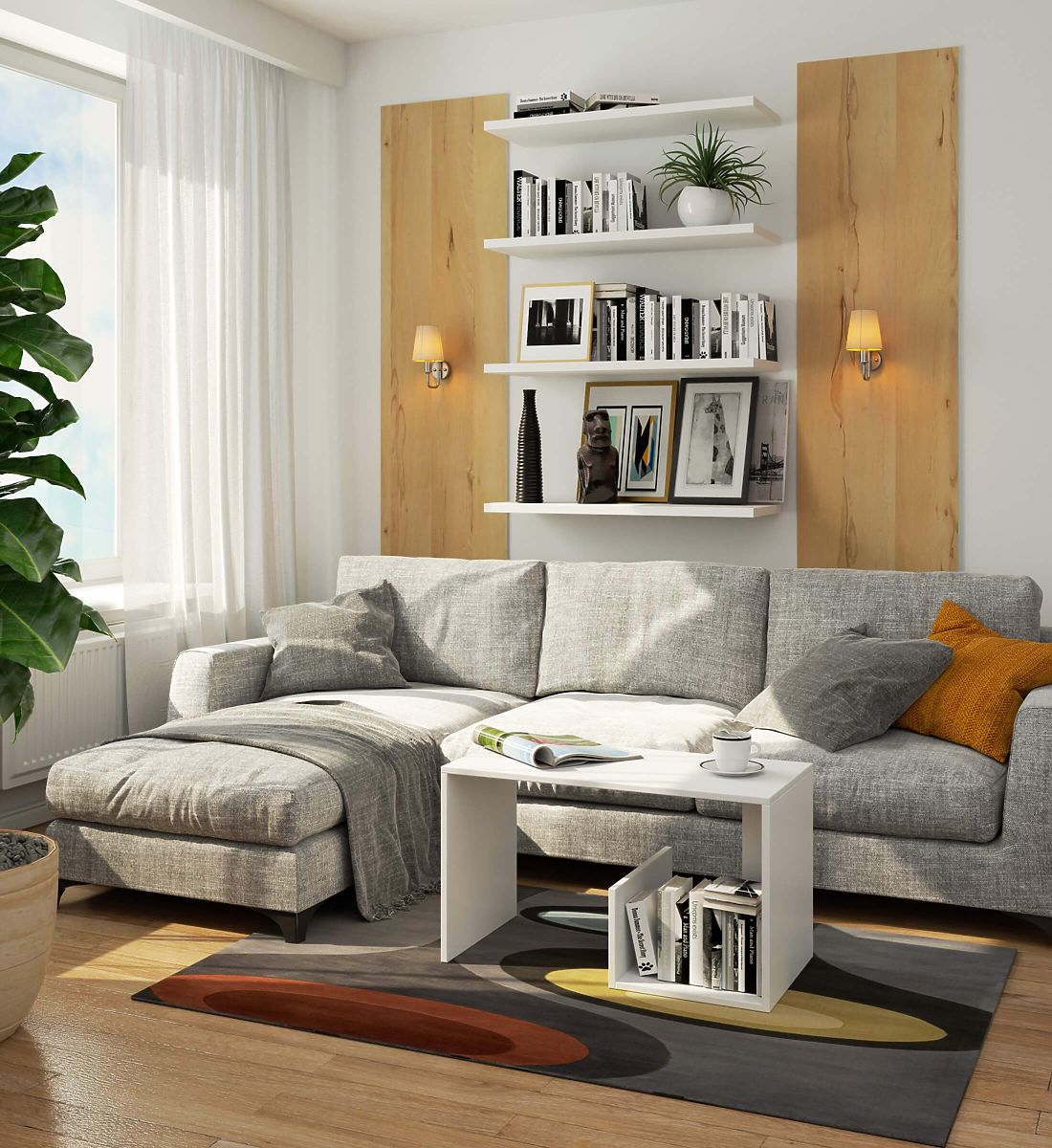 Stolik konferencyjny Paul biały to funkcjonalny mebel stworzony z myślą o nowoczesnym salonie. Doskonale nadaje się do salonu, gdzie będzie pełnił rolę stolika na kawę i przekąski, umieszczonego w pobliżu narożnika lub sofy. Nic jednak nie stoi na przeszkodzie, aby umieścić go także w sypialni lub pokoju nastolatka. Białe stoliki konferencyjne Paul mają prostą konstrukcję utrzymaną w minimalistycznych, skandynawskich wzorach. Wykonane są z laminowanej płyty, ale nie tracą na wytrzymałości, osiągają wagę 15 kg. Szerokość stolika konferencyjnego to 80 cm, długość 40 cm i wysokość 45 cm. Dodatkowa półka na dole pozwala umieścić rzeczy, które nie muszą być na widoku - na przykład książki lub gry planszowe.