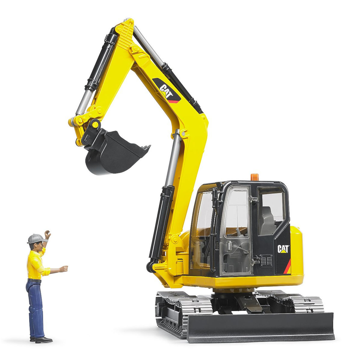 Bruder Minikoparka CAT z figurką. Zestaw Bruder 02466 zawiera minikoparkę CAT i figurkę robotnika. Figurka ma około 10,7 cm wysokości i ruchome kończyny. .. więcej