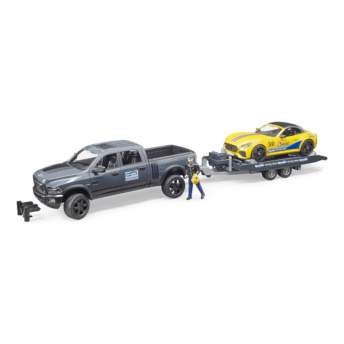 Model Bruder 2504 z terenowym i sportowym autem oraz figurką. .. więcej