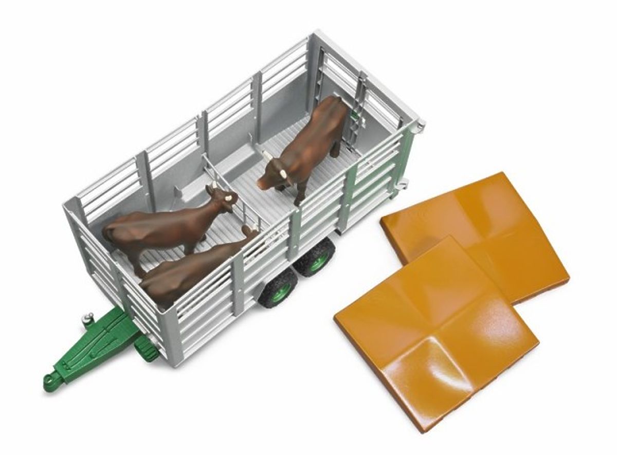 Bruder Transporter dla zwierząt z figurką krowy. Każdy mały rolnik doceni nowość roku 2016 - Przyczepa do transportu zwierząt Bruder 2227. Zwierzęta dostają się do pojazdu przez otwierane tylne drzwi. Przyczepa Bruder 02227 ma zdejmowany dach i dużo miejsca na przewożone zwierzęta. Pojazd transportowy posiada również otwory w górnej części, aby przewożone zwierzęta mogły oddychać. Przyczepa jest kompatybilna ze wszystkimi seriami traktorów Bruder (Super Pro, Top Pro, Premium Pro). Kup do przyczepy porządny traktor Bruder, np. Massey Ferguson Bruder (BR2040) i ciesz się prawdziwą zabawą Bruder. Przyczepę Bruder 02227 można uzupełnić o dodatkowe akcesoria i figurki Bruder, aby cieszyć się jeszcze większą zabawą. Wyprodukowano w Niemczech z wysokiej jakości materiałów. Główne cechy: otwierane tylne drzwi, zdejmowany dach, kompatybilna ze wszystkimi traktorami Bruder, figurka krowy, wyprodukowano w Niemczech.