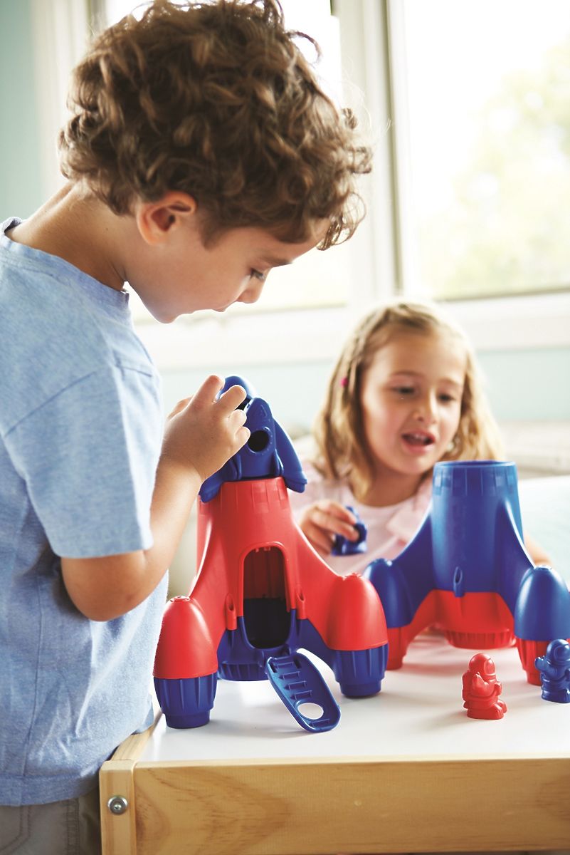 Jeśli szukasz plastikowych zabawek do piasku lub wody i bardzo zależy Ci na bezpieczeństwie Twoich dzieci, oferujemy amerykańską markę ekologicznych zabawek Green Toys, która jest popularna nie tylko w Ameryce, ale odnosi niesamowite sukcesy na całym świecie. Green Toys to przede wszystkim odpowiedzialna produkcja zabawek z recyklingowanego plastiku z butelek po mleku. Start za 3-2-1 teraz... Green Toys Rakieta wyrusza na kolejną ekologiczną misję w głęboki kosmos! Rakieta ma zdejmowany kokpit i dwóch astronautów, którzy mają skafandry, hełmy i plecaki z dwoma butlami tlenu. Ma także duże drzwi wejściowe, które otwierają się w dół i służą jako schody. Główne cechy: bezpieczny materiał dla dzieci, który nie zawiera PVC, bisfenolu ani ftalanów, wykonany z recyklingowanego plastiku z butelek po mleku, solidny i gładki materiał, oryginalny design, opakowanie jest w 100% ekologiczne i nadające się do recyklingu.