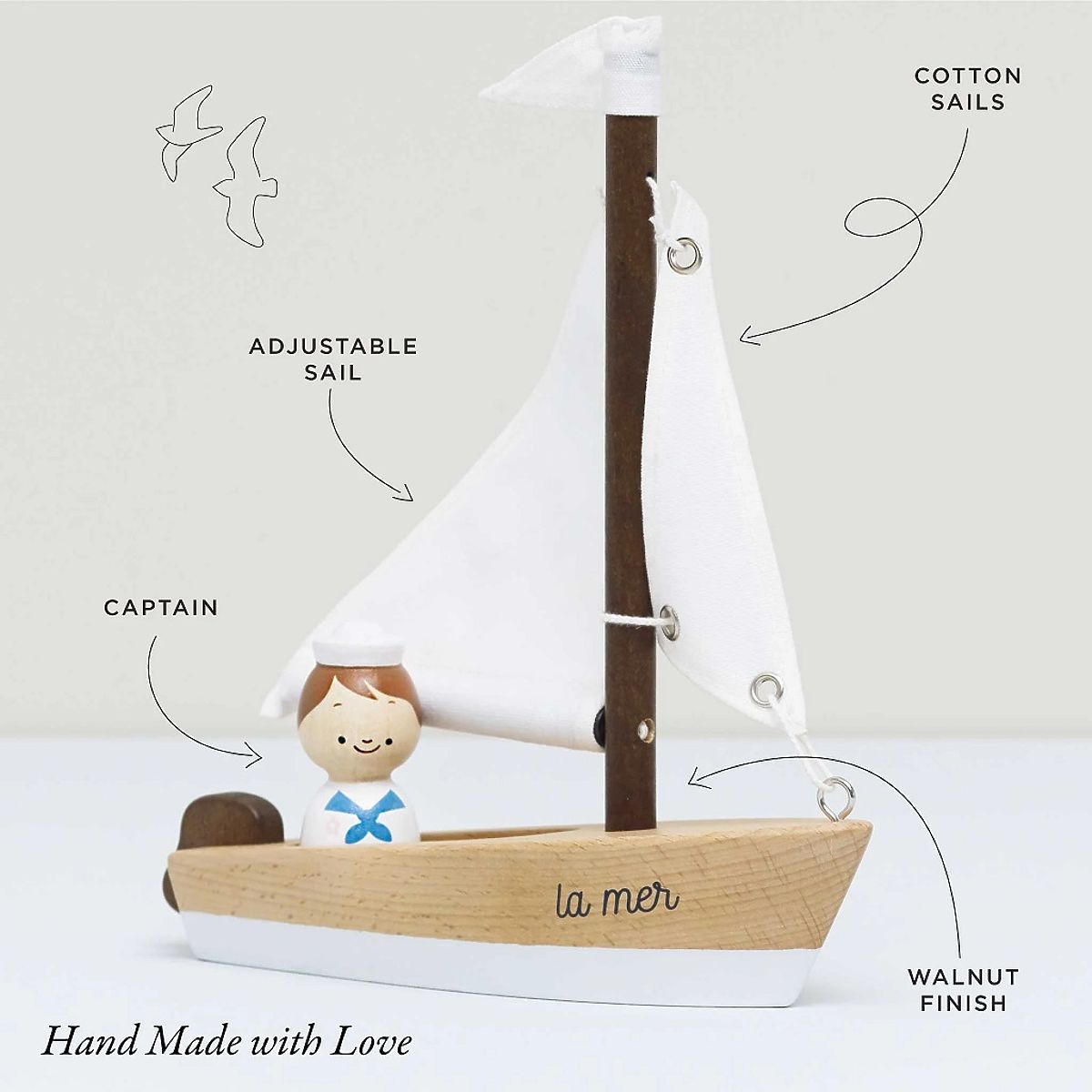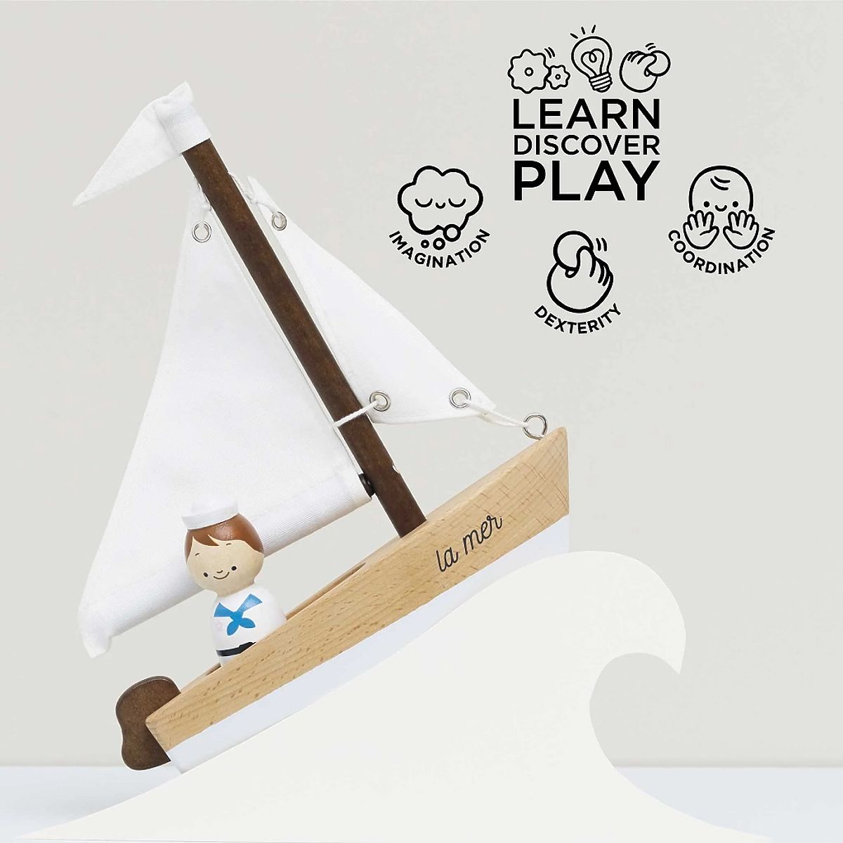Wypłyń na szerokie morze i odkrywaj nowe przygody z tym wspaniałym żaglowcem, który emanuje ponadczasowym urokiem. Drewniany żaglowiec jest ręcznie wykonany z drewna bukowego z certyfikatem FSC®, niektóre części są bejcowane na kolor orzecha, co dodaje mu autentyczności. Ozdobiony nietoksycznymi farbami na bazie wody, które są bezpieczne dla dzieci. Bawełniana flaga i żagle lekko falują na wietrze, napędzając łódź ku nieskończonym horyzontom, co zwiększa wartość zabawy tej zabawki. Łódź towarzyszy miniaturowy drewniany marynarz, który ma ręcznie malowany marynarski strój, dzięki czemu zabawa tym żaglowcem staje się jeszcze bardziej zabawna. Niezależnie od tego, czy łódź jest używana jako element dekoracyjny, czy jako zabawka, natychmiast przyciąga uwagę każdego dziecka. Pomaga rozwijać umiejętności poznawcze, zręczność i koordynację ręka-oko. Zabawki z celem Wszystkie zabawki firmy Le Toy Van są tworzone z myślą o długowieczności. Projektowane z miłością przez doświadczonych rzemieślników przy użyciu etycznych praktyk i zrównoważonych materiałów, które są bardziej przyjazne dla naszej planety. Główne cechy: rozwija zręczność, koordynację i wyobraźnię wykonane z drewna z certyfikatem FSC® malowane nietoksycznymi farbami na bazie wody testowane zgodnie z najsurowszymi standardami zabawka bez plastiku Znak i certyfikat FSC® (Forest Stewardship Council) gwarantuje, że drewno, z którego produkt został wykonany, nie zostało pozyskane nielegalnie i pochodzi z lasów zarządzanych w sposób zrównoważony lub bliski naturze, gdzie przestrzegane są surowe wymagania środowiskowe i społeczne. Znak FSC® na produkcie oznacza, że swoim zakupem pomagasz chronić lasy i wspierasz zrównoważone, odpowiedzialne lub bliskie naturze zarządzanie, dzięki czemu nasze lasy są bardziej stabilne, zdrowsze, mają naturalny skład gatunkowy i lepiej odpierają negatywne skutki zmian klimatycznych.