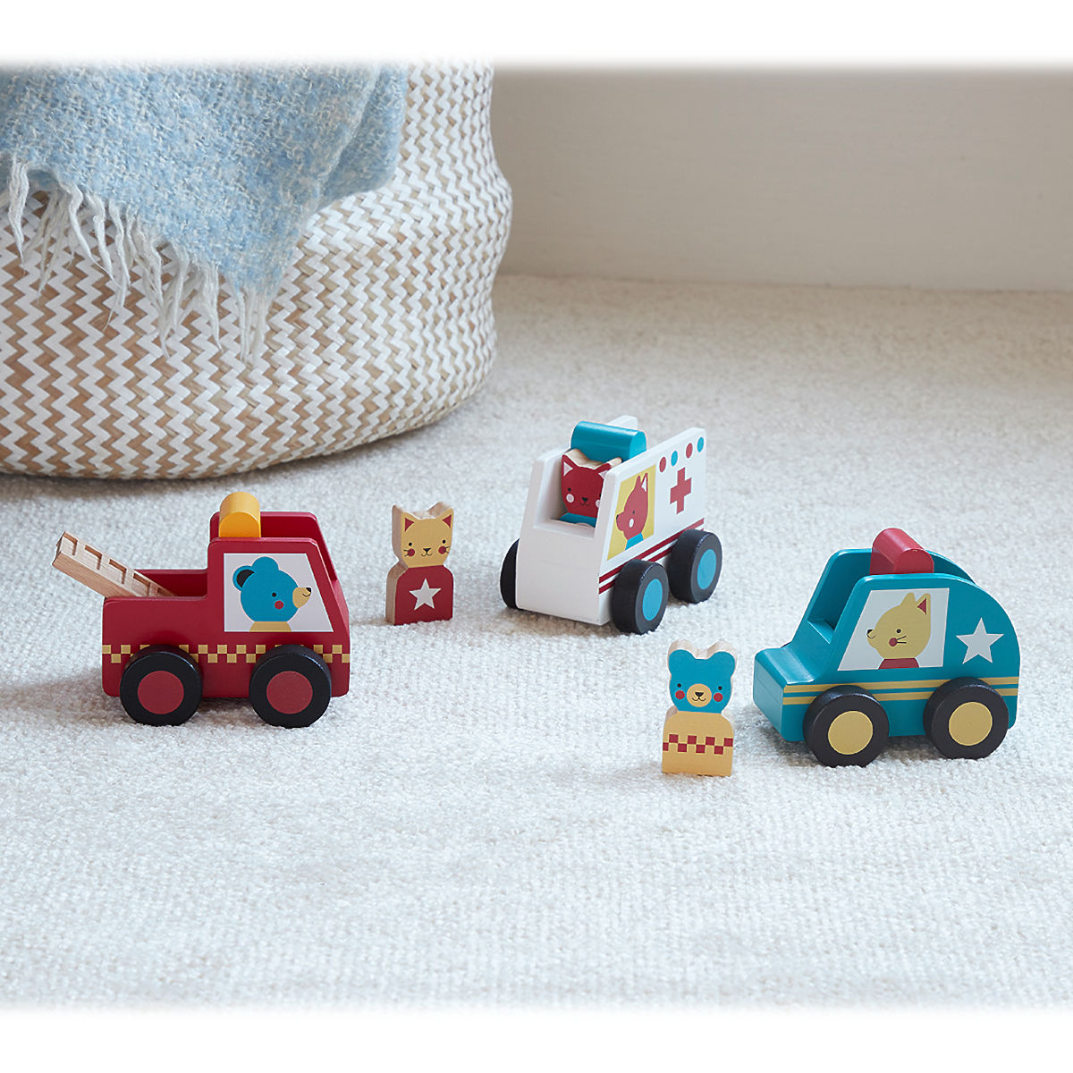 Dla wszystkich, którzy są gotowi ruszyć na pomoc. Zestaw pojazdów ratunkowych zawiera wóz strażacki, karetkę i policję. Każdy pojazd jest wyposażony w figurkę zwierzęcego kierowcy: misia, liska i kotka. Pojazdy są solidne i trwałe, a wszystko wykonane z materiałów pozyskiwanych w sposób zrównoważony. Główne cechy:3 pojazdy i 3 figurkisolida i trwała konstrukcjawyprodukowane w 100% z drewna FSC® Znak i certyfikat FSC® (Forest Stewardship Council) gwarantuje, że drewno, z którego produkt został wykonany, nie zostało pozyskane nielegalnie i pochodzi z lasów zarządzanych w sposób zrównoważony, gdzie przestrzegane są surowe wymagania środowiskowe i społeczne. Znak FSC® na produkcie oznacza, że poprzez zakup pomagasz chronić lasy i wspierasz zrównoważone, odpowiedzialne lub bliskie naturze gospodarowanie, dzięki któremu nasze lasy są bardziej stabilne, zdrowsze, mają naturalny skład gatunkowy i lepiej znoszą negatywne skutki zmian klimatycznych.