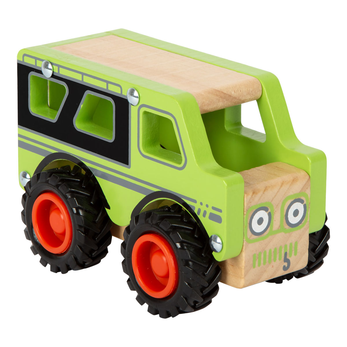 Solidny i wytrzymały samochodzik wykonany z litego, zrównoważonego drewna. Posiada przestronną, otwartą kabinę, do której można umieścić figurkę kierowcy. Gumowe koła samochodzika zapewniają cichą jazdę na wszystkich rodzajach nawierzchni. Główne cechy: solidna i wytrzymała konstrukcja, otwarta i przestronna kabina, cicha jazda, wykonane w 100% z drewna FSC®.