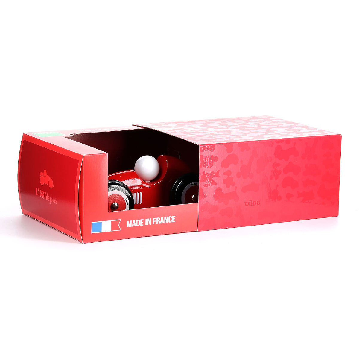 Duży drewniany samochodzik o unikalnych kształtach i kolorach, który wzbudzi entuzjazm i chęć do wyścigów u każdego, zarówno małego, jak i dużego kierowcy. Dzięki swojemu wykonaniu z łatwością przyciągnie uwagę dorosłych kolekcjonerów, a dzięki swoim rozmiarom stanie się zauważalnym dodatkiem do wnętrza. Elementy samochodzika wykonane są z litego drewna lakierowanego tradycyjnym procesem zanurzania w kąpieli z farbą. Solidne koła charakteryzują się płynnym ruchem i są wyposażone w gumowe pierścienie, dzięki którym zabawka nie generuje niepotrzebnego hałasu podczas ruchu. Wyprodukowane we Francji, dostarczane w ekskluzywnym pudełku. Główne cechy: unikalny design i wykonanie, cicha i płynna jazda, wyprodukowane we Francji.