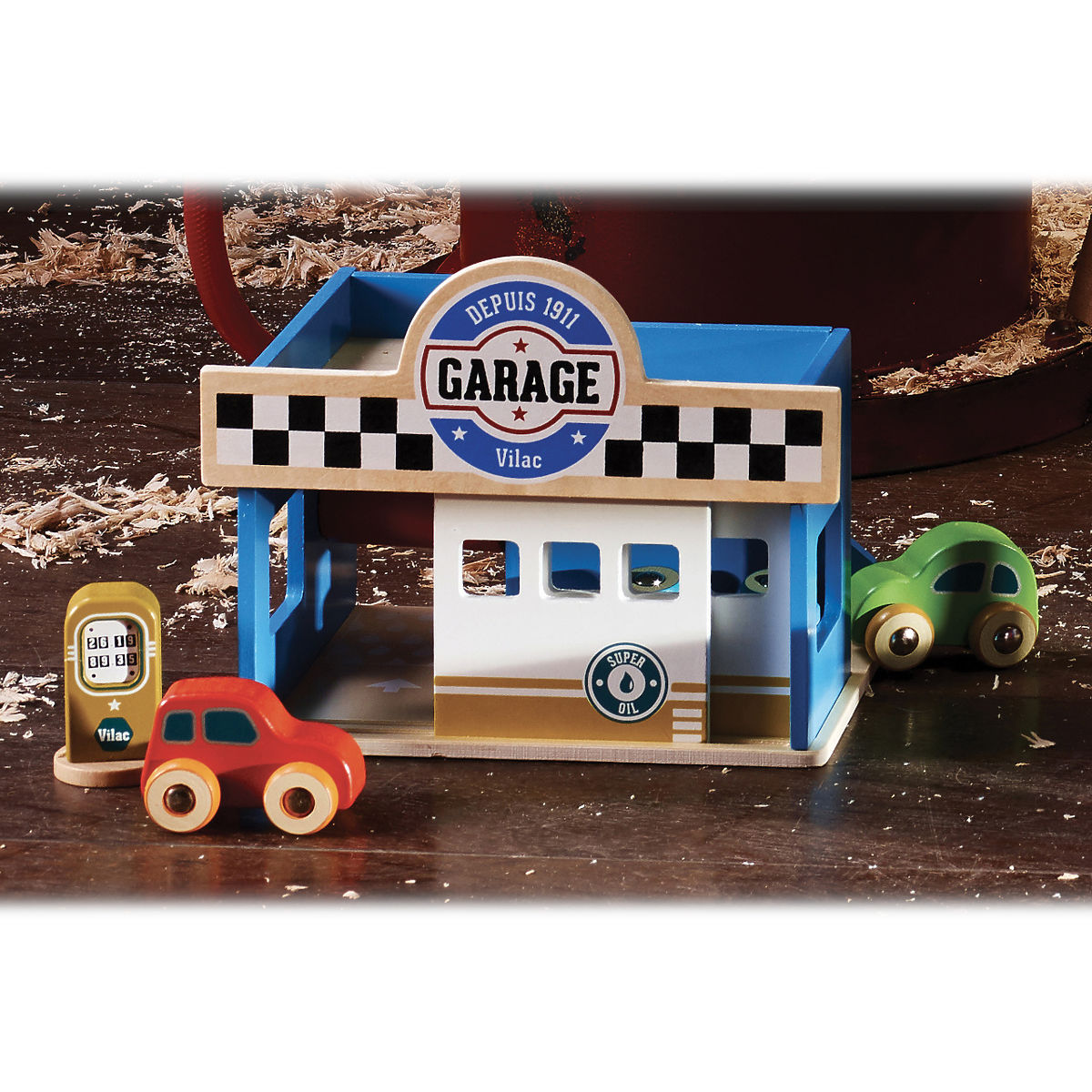 W uroczej małej garaży autka będą zawsze doskonale zadbane! Można tu zatankować, umyć lub zaparkować samochód na dachu. Dzięki przesuwnym drzwiom myjni, szczotce i zdejmowanej pistolecie pompy, dzieci mogą w pełni zanurzyć się w swoich fantastycznych zabawach i poczuć się jak przy opiece nad prawdziwym autem. W zestawie znajdują się dwa różne autka, dzięki czemu można zacząć zabawę od razu po rozpakowaniu. Zabawka wyróżnia się wybraną kolorystyką, która gustownie uzupełni wystrój dziecięcego pokoju. Nie wahaj się i uzupełnij ją o Prom Vilacity, z którym tworzy harmonijną kolekcję. Wykonane z trwałego litego drewna i mocnej sklejki. Główne cechy: garaż, pompa i 2 autka, przesuwne drzwi i szczotka myjni, unikalny design, solidne i trwałe wykonanie.