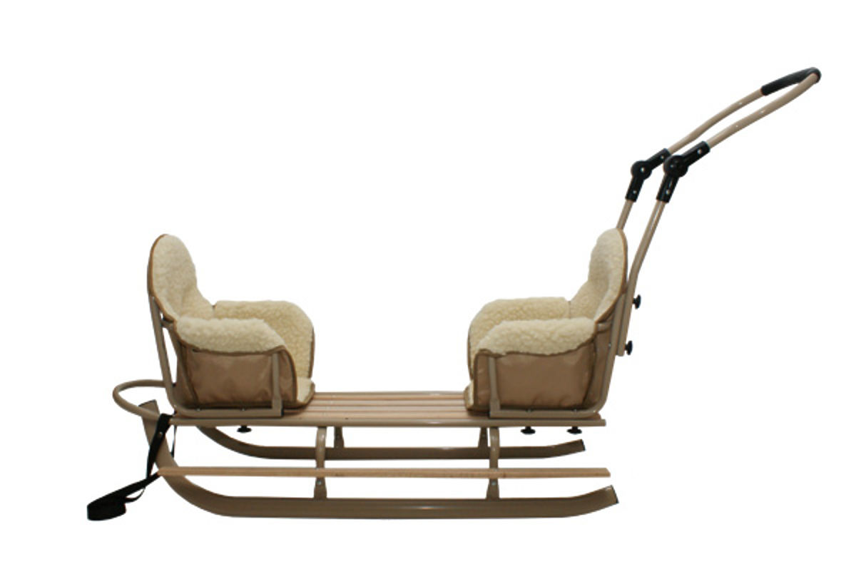 Sanki mają oparcie, uchwyt i ciepłą wełnianą podkładkę, która zapewnia dzieciom komfort.