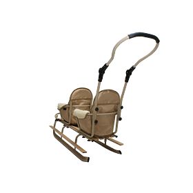 Uniwersalna beżowa konstrukcja sanek doskonale pasuje zarówno dla dziewczynek, jak i chłopców.