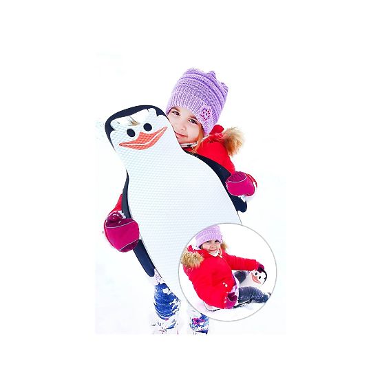 Oryginalny dziecięcy szybowiec w kształcie pingwina przeznaczony jest dla wszystkich miłośników zimowych zabaw. Korpus pingwina wykonany jest z ciepłego materiału piankowego, który izoluje zimno od podłoża. Spód wykonany jest z twardego, elastycznego plastiku z rowkami zapewniającymi superszybkie zejście.