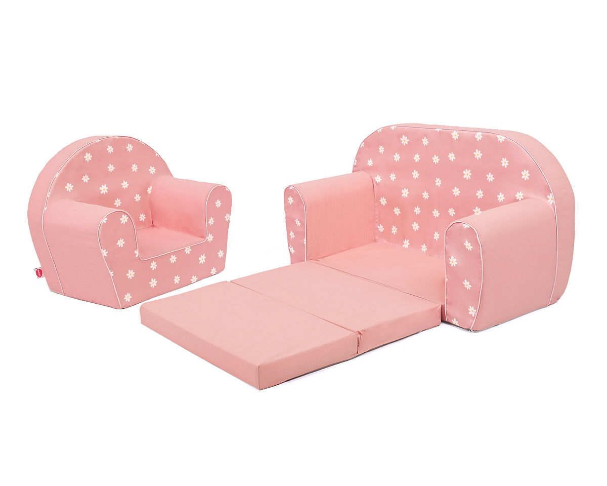 Dziecięca sofa z motywem stokrotek, idealna do pokoju dziecięcego. .. więcej