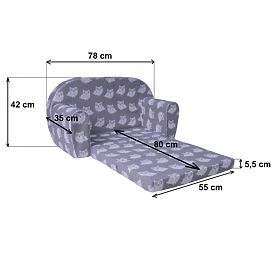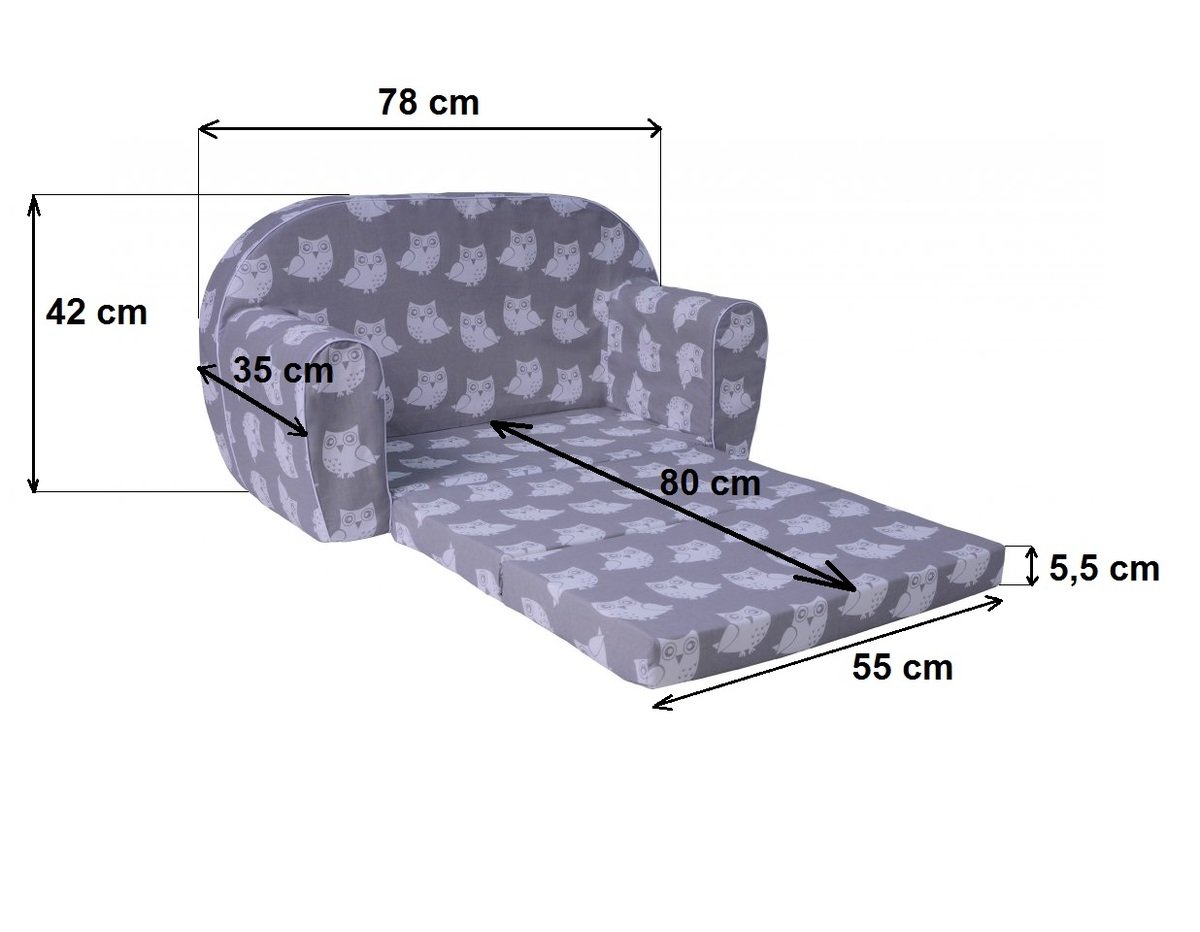 Sofa jest bardziej przestronna niż fotel, przez co idealnie nadaje się dla rodzeństwa lub przyjaciół. Został zaprojektowany tak, aby wygodnie mogło na nim usiąść 2 dzieci. Możesz nawet rozłożyć sofę , co na pewno spodoba się dzieciom. Po rozłożeniu sofa ma 80 cm długości.