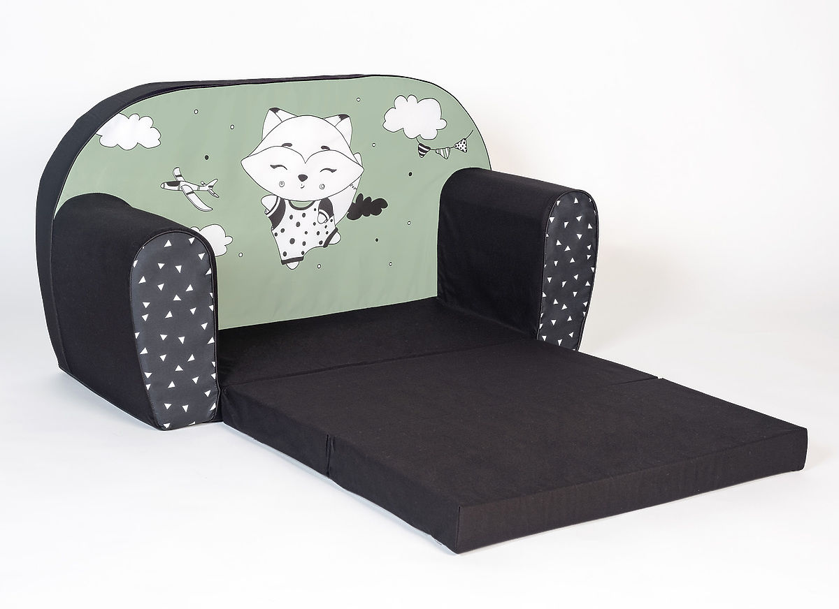 Dziecięca rozkładana sofa z nadrukiem lisa, łatwa do przenoszenia i składania. .. więcej