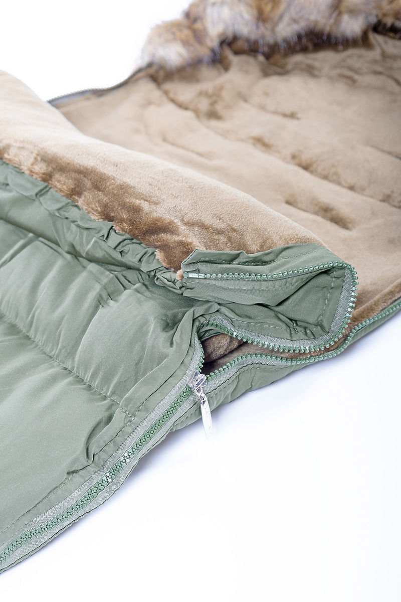 Ciepła i trwała mysz Fusak w kolorze zielonym (Army Green). Śpiwór ocieplony jest przyjemnym i miękkim polarem, dzięki czemu zapewnia ochronę i komfort w najmroźniejsze dni. Wierzchnia warstwa gwarantuje właściwości wodoodporne i wiatroodporne . Miękkie futerko daje poczucie bezpieczeństwa i chroni przed wiatrem. Dzięki 5 otworom na paski z tyłu śpiworka idealnie pasuje do każdego wózka lub fotelika samochodowego. Śpiwór wyposażony jest w dwa zamki błyskawiczne , dzięki czemu można rozpiąć część kocyka lub całkowicie go rozpiąć i pozostawić jedynie karimatę do wózka.