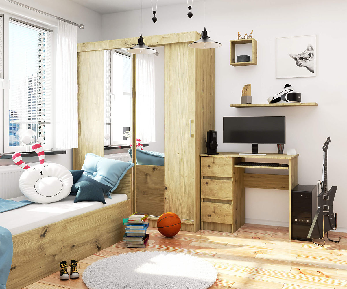 Biurko komputerowe A-6 dąb artisan doskonale pasuje do pokoju dziecięcego i młodzieżowego, ale także do gabinetu. Jego niewielkie wymiary umożliwiają również aranżację przestrzeni do nauki lub pracy z domu w sypialni lub salonie. Biurko jest także idealne do małych, przytulnych biur. Dzięki kolorowi dąb artisan mebel pasuje zarówno do nowoczesnych, jak i klasycznych elementów meblowych.