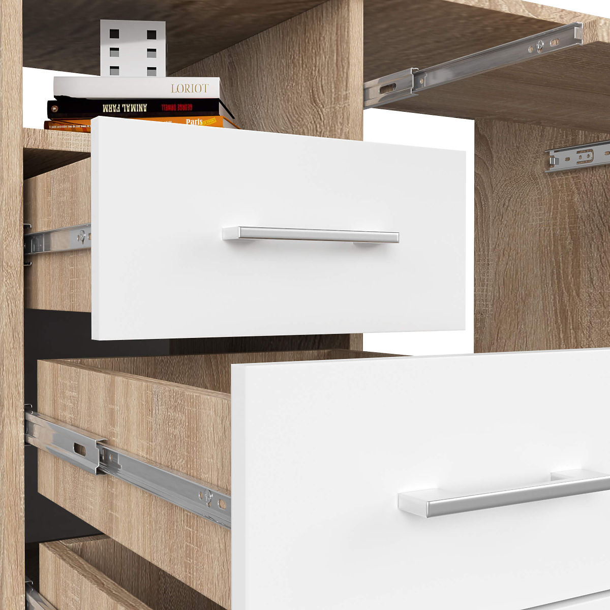 Biurko ANA z półką na klawiaturę i szufladami w kolorze dąb sonoma/biały. .. więcej